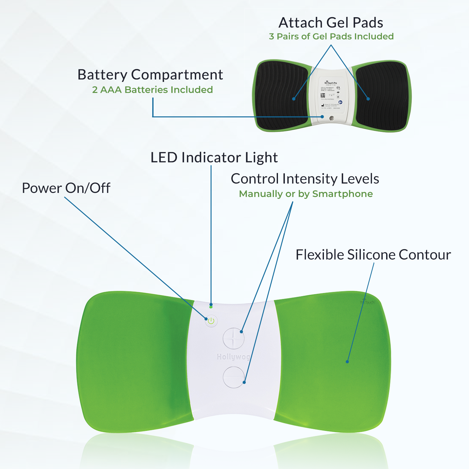 Includes 3 pairs of reusable gel pads, bundled with an additional 3 pairs of gel pads (6 pairs total), that securely adhere the Witouch Pro device to your skin; please consult your user manual for setup instructions prior to first use
